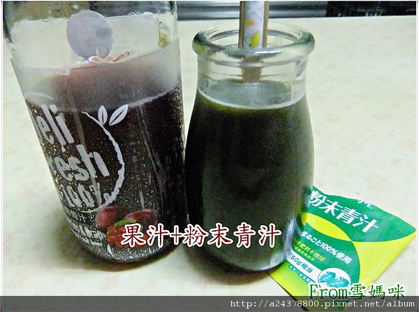 呵呵~沒想到粉末青汁完全融化在果汁裡了而且不會沉澱耶